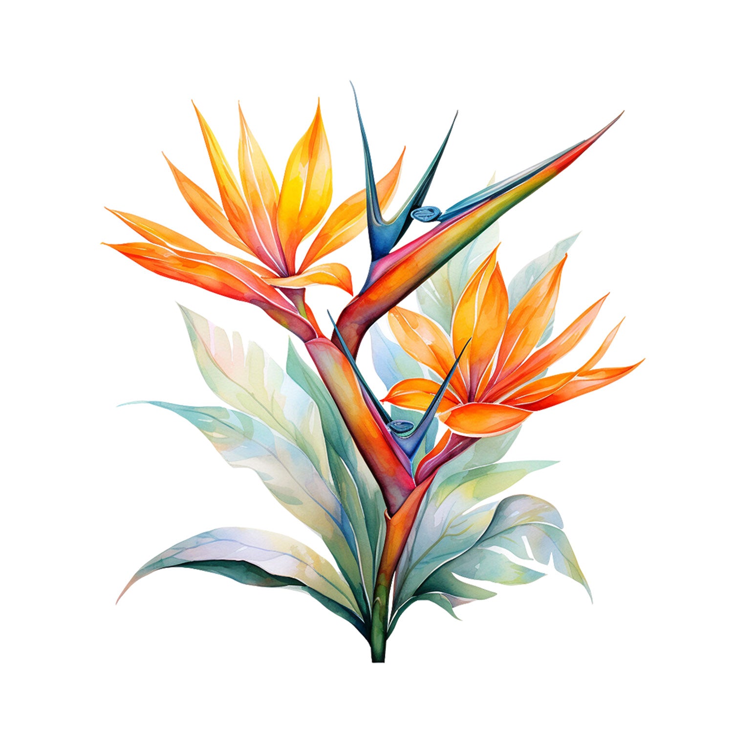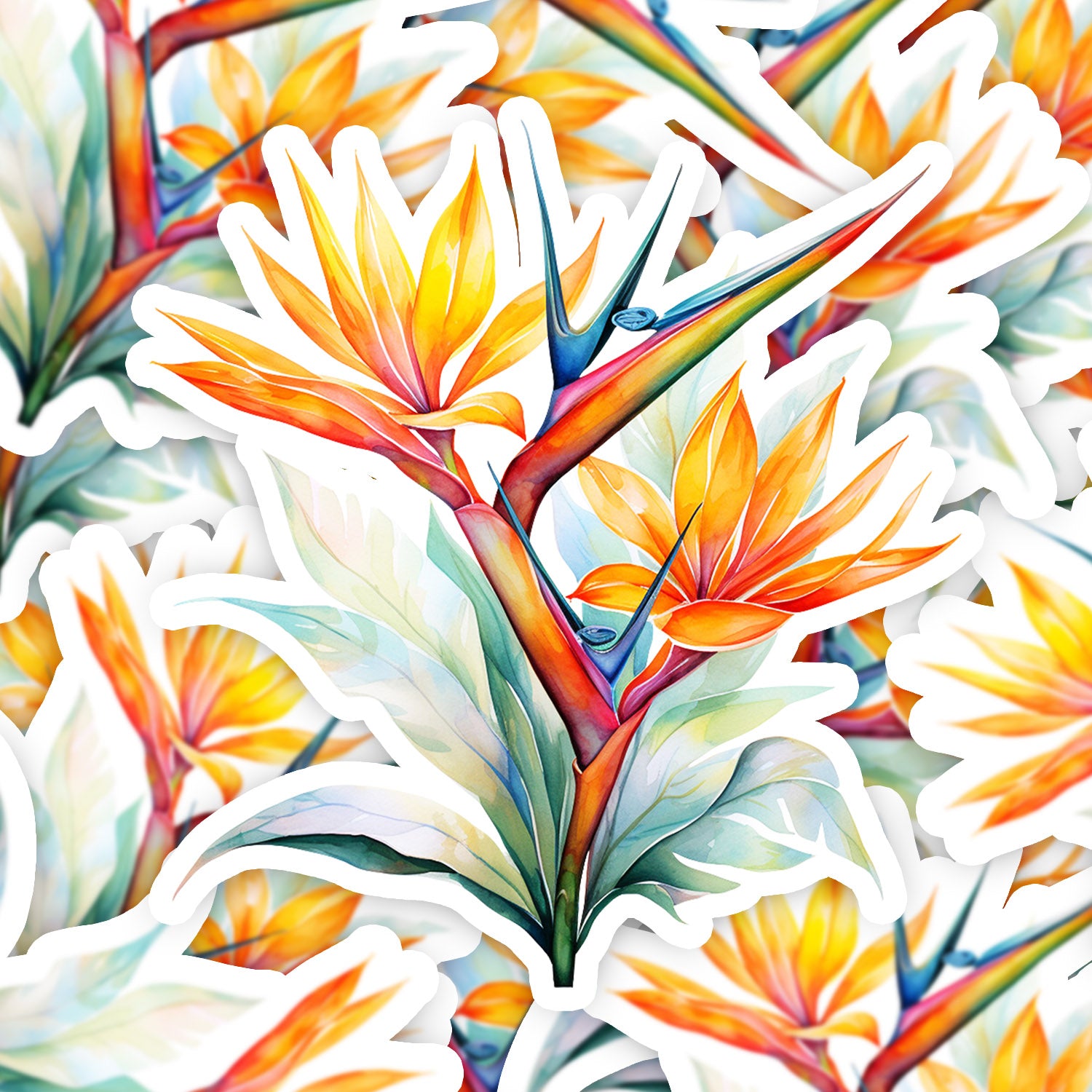 Set 5 bucati, Sticker decorativ, Strelitzia tropical, Rezistent la apa, NO10531, 6 cm, Multicolor