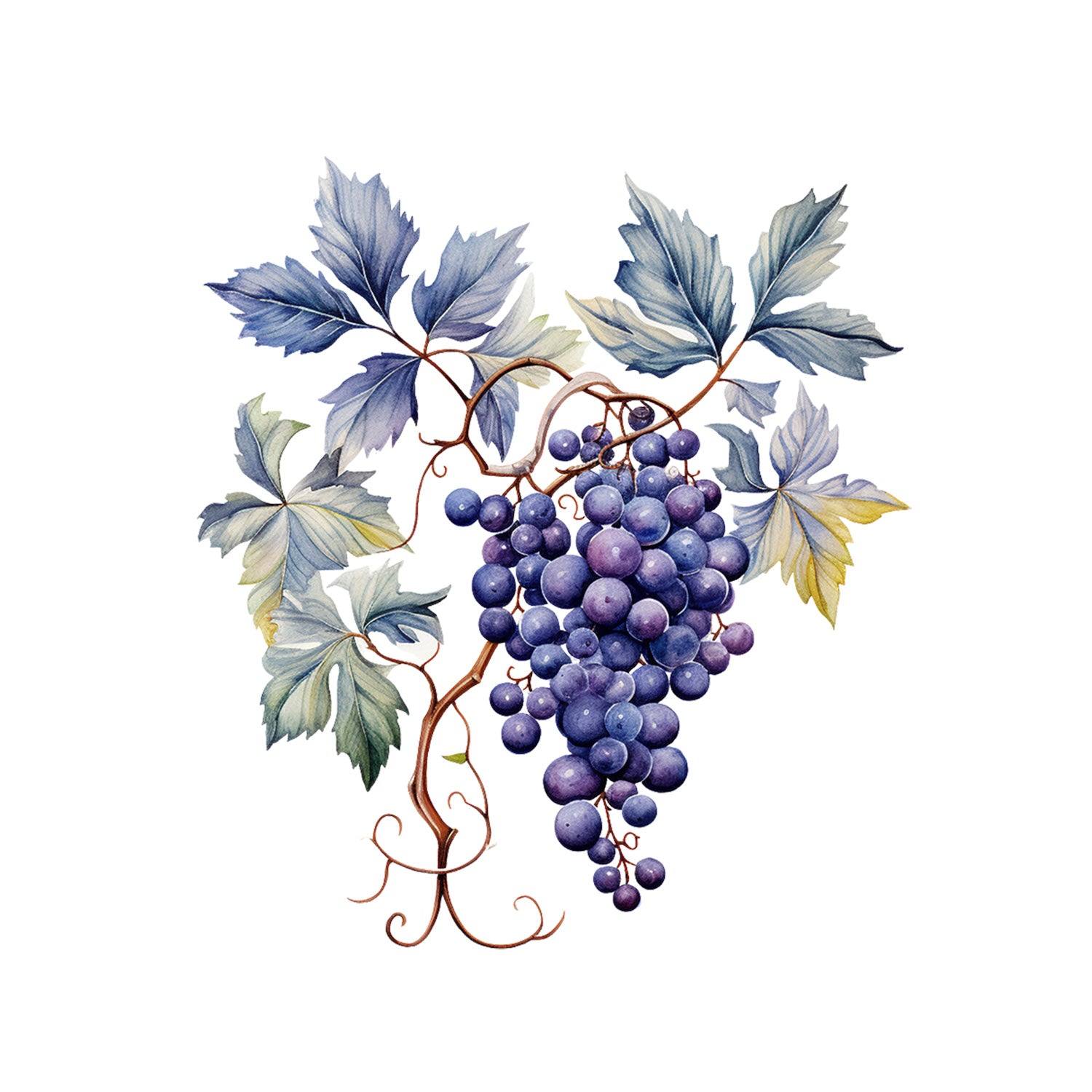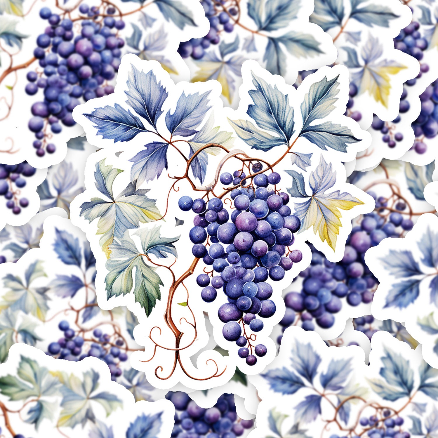 Set 5 bucati, Sticker decorativ, Strugure negru cu frunze, Rezistent la apa, NO11369, 6 cm, Multicolor