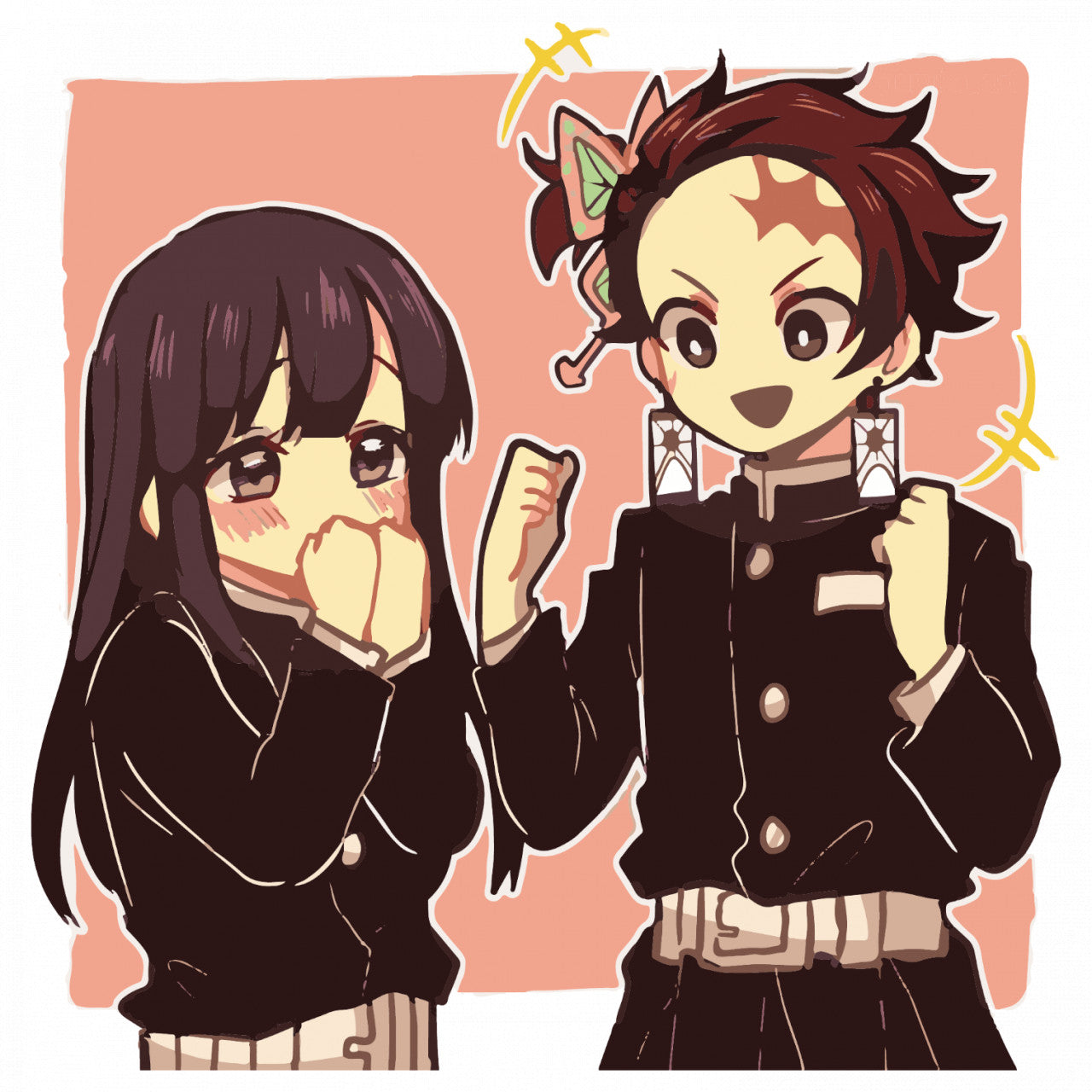 Set 5 bucati, Sticker decorativ, Tanjiro x Kanao Demon Slayer, Rezistent la apa, NO8895, 6 cm, Multicolor