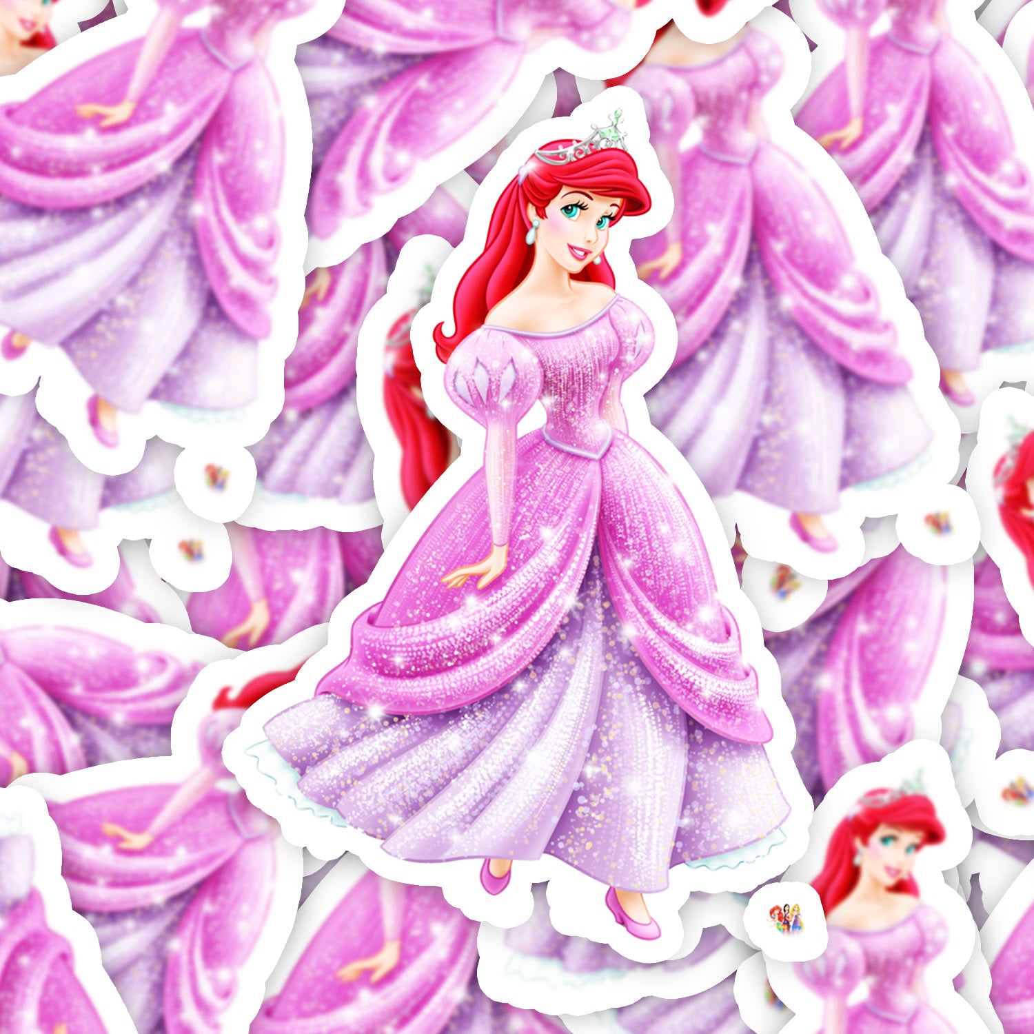 Set 5 bucati, Sticker decorativ, The Little Mermaid Printesa Ariel, Rezistent la apa, NO14001, 6 cm, Multicolor