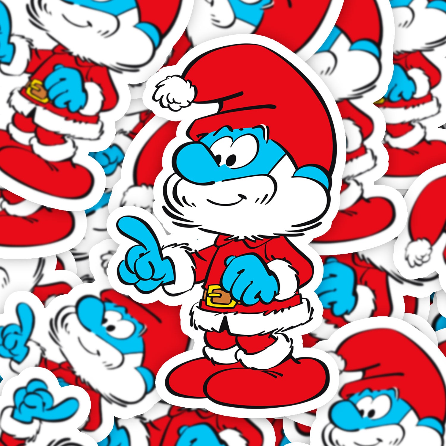 Set 5 bucati, Sticker decorativ, The Smurfs Tata Smurf mos craciun, Rezistent la apa, NO11643, 6 cm, Multicolor