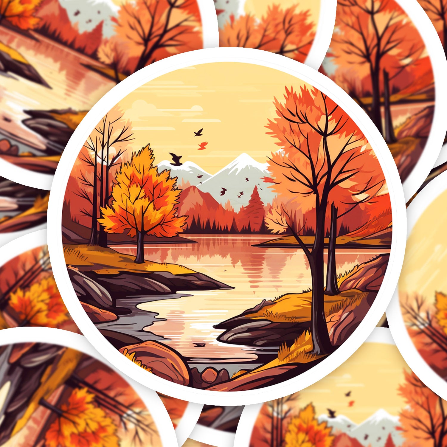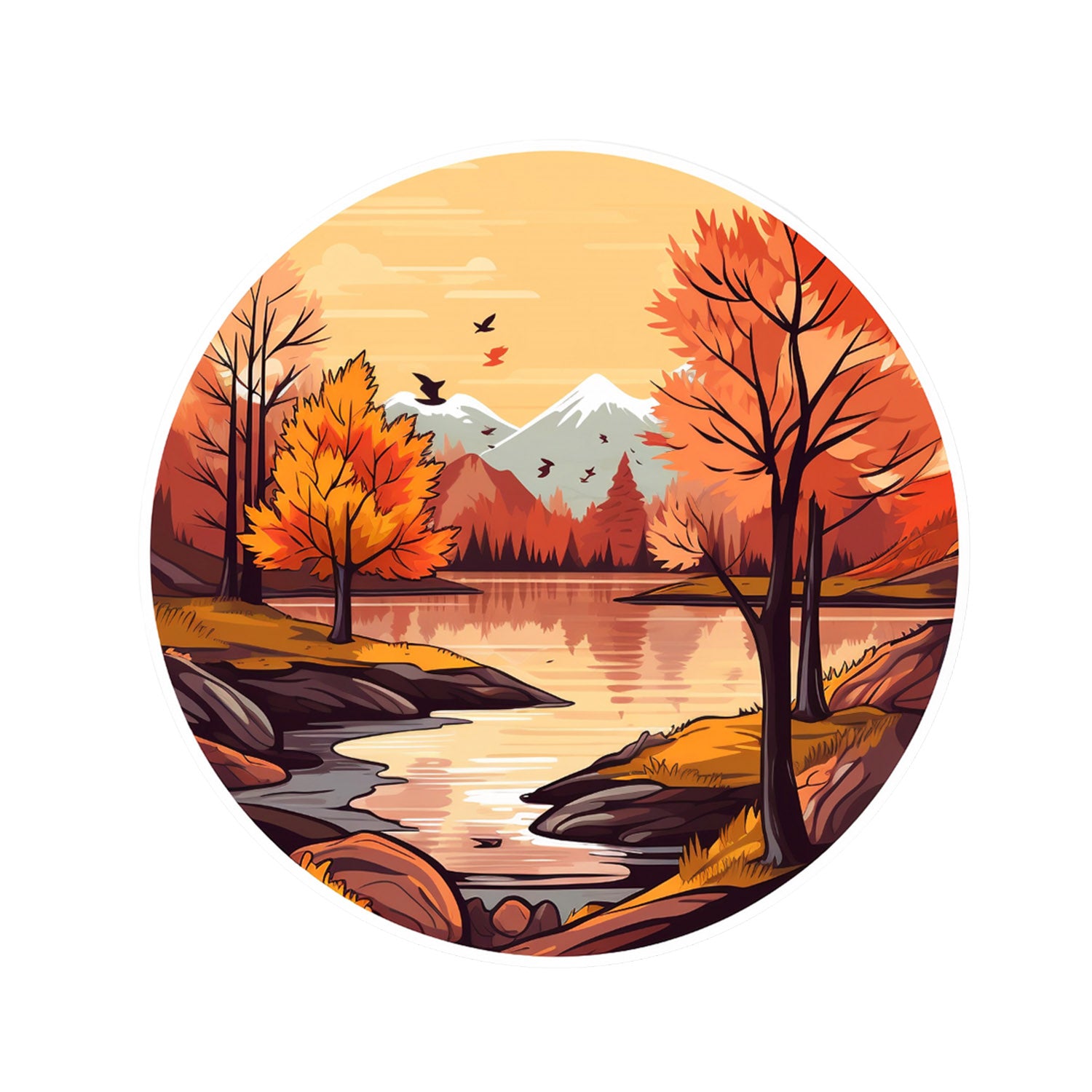 Set 5 bucati, Sticker decorativ, Toamna Peisaj montan, Rezistent la apa, NO12029, 6 cm, Multicolor