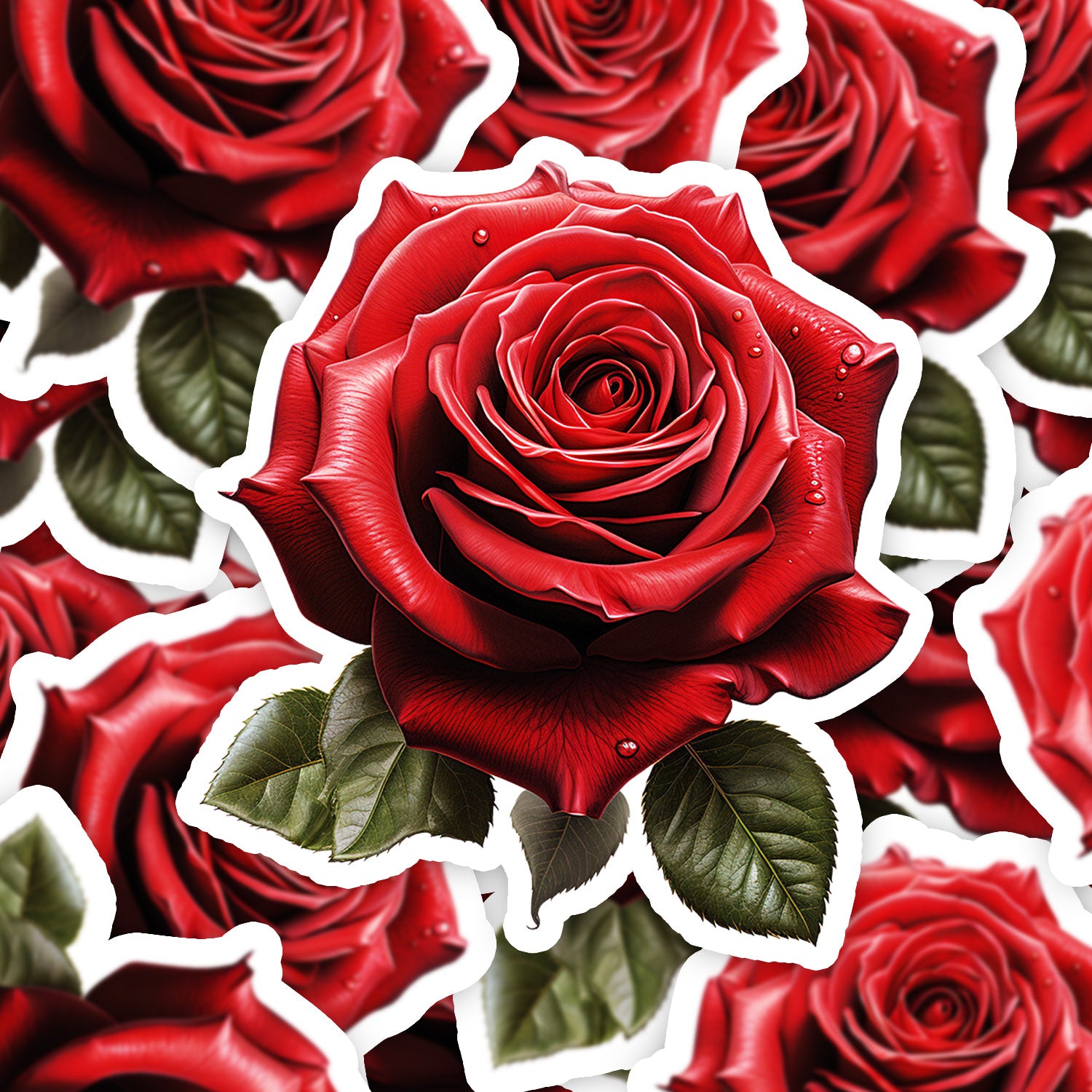 Set 5 bucati, Sticker decorativ, Trandafir rosu Cristal, Rezistent la apa, NO15448, 6 cm, Multicolor