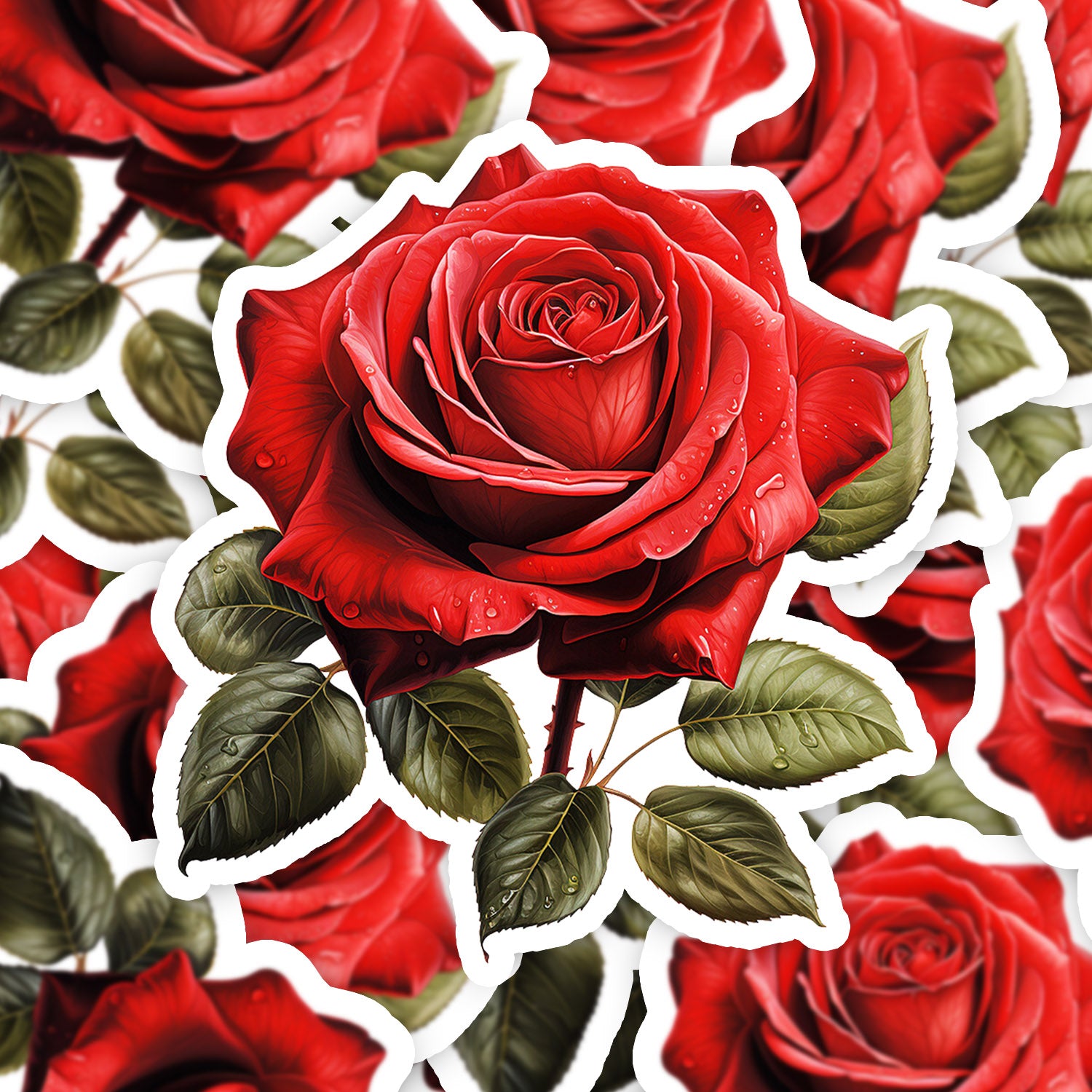 Set 5 bucati, Sticker decorativ, Trandafir rosu Singuratate, Rezistent la apa, NO16036, 6 cm, Multicolor