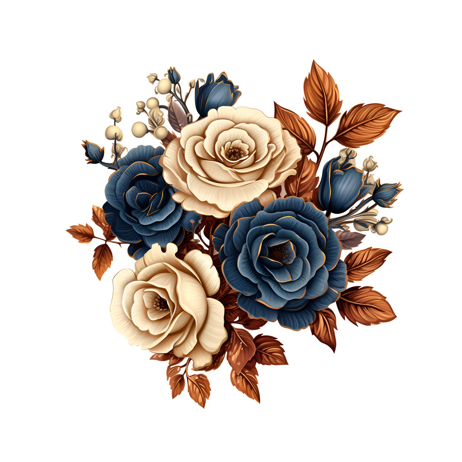 Set 5 bucati, Sticker decorativ, Trandafiri alb albastru, Rezistent la apa, NO10763, 6 cm, Multicolor