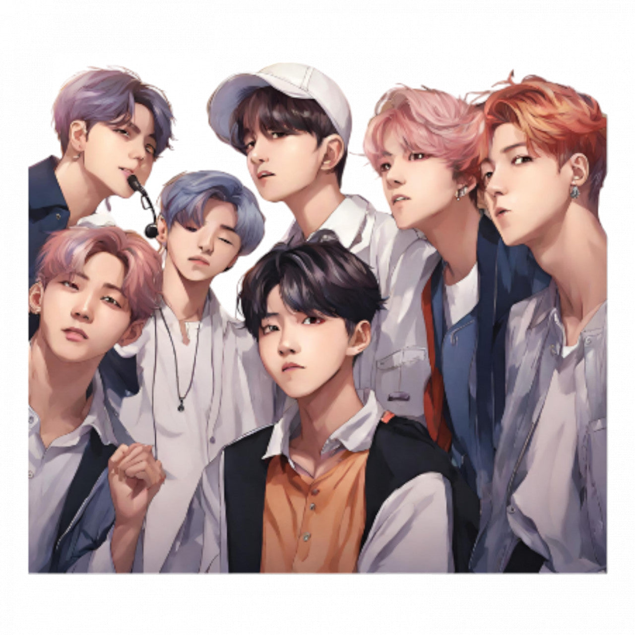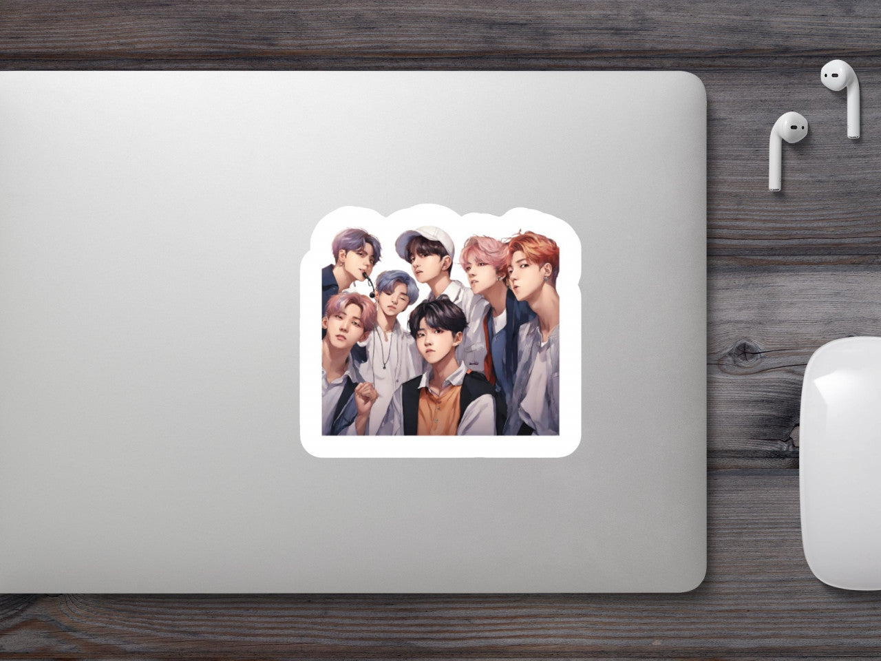 Set 5 bucati, Sticker decorativ, Trupa BTS, Rezistent la apa, NO8070, 6 cm, Multicolor
