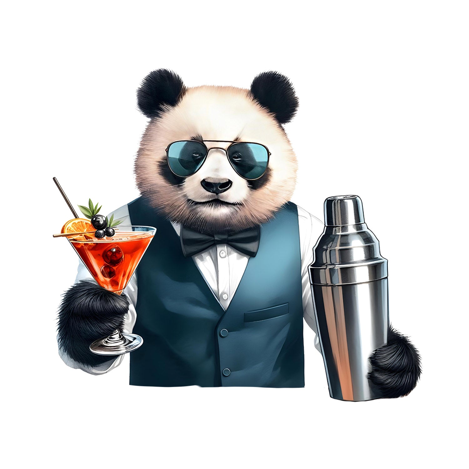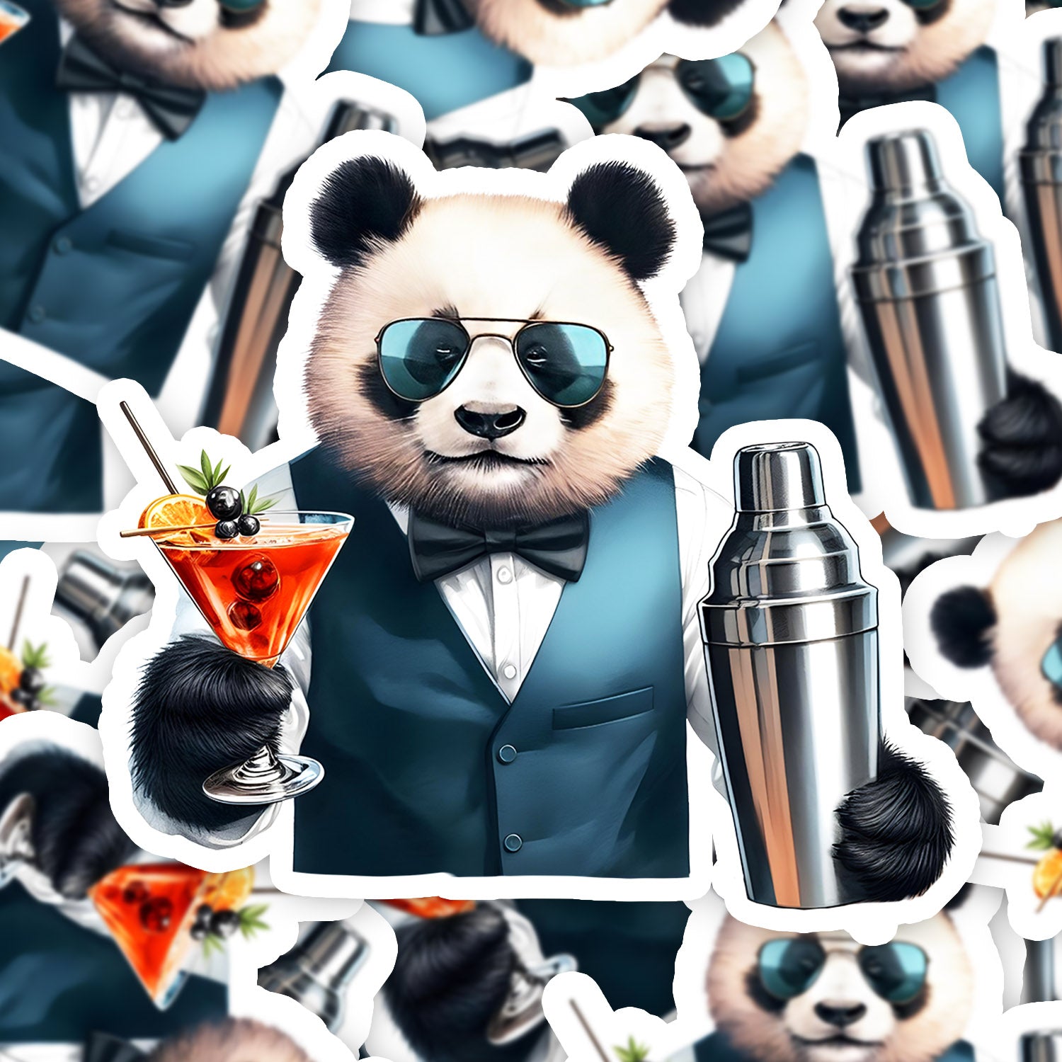 Set 5 bucati, Sticker decorativ, Ursul Panda barman, Rezistent la apa, NO15873, 6 cm, Multicolor