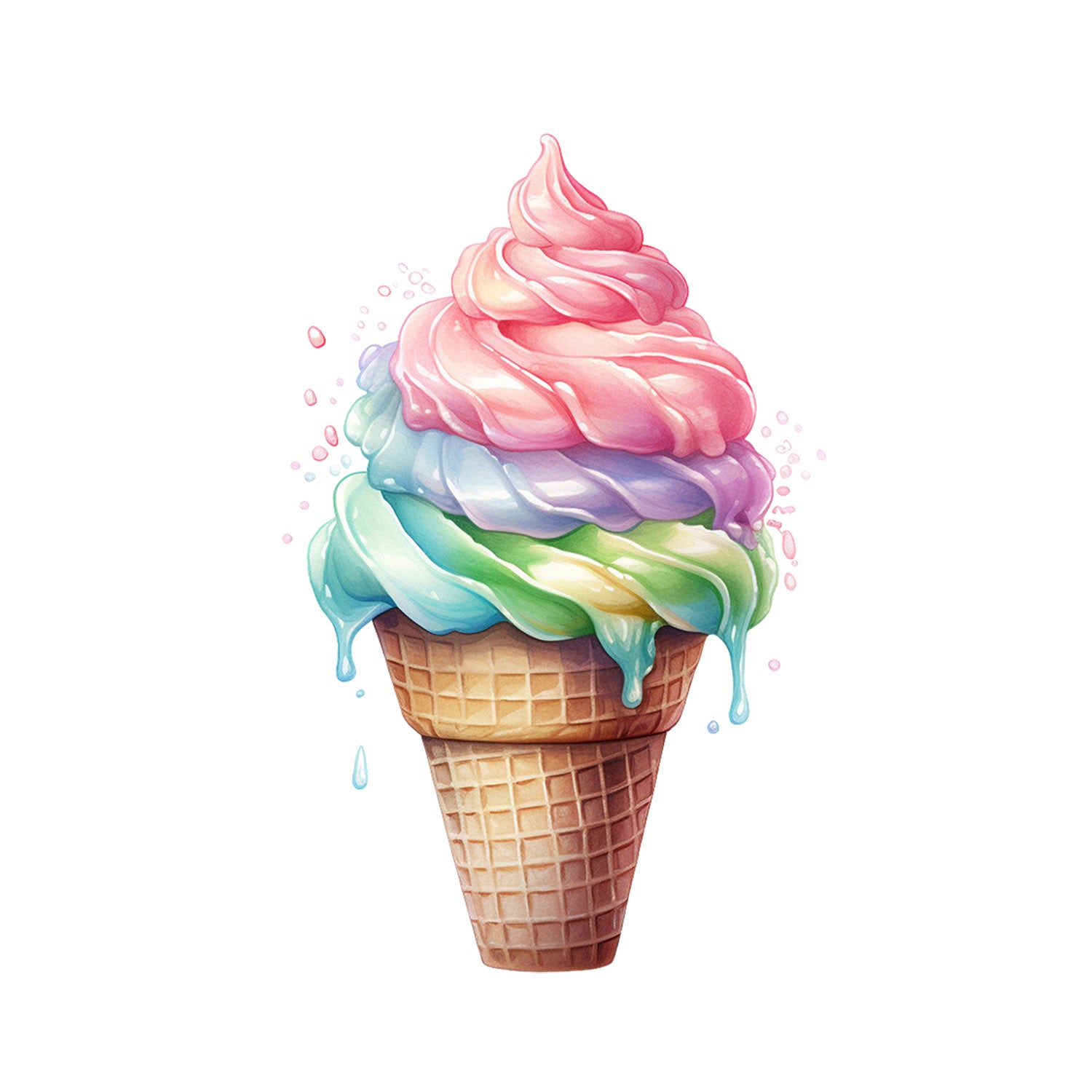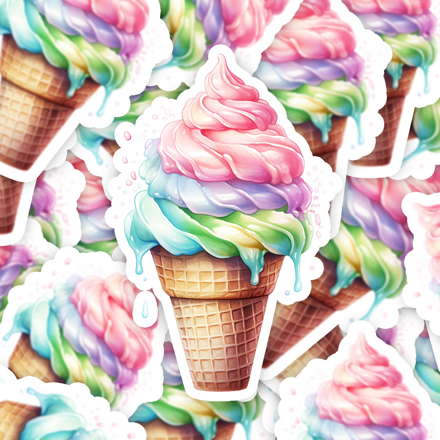 Set 5 bucati, Sticker decorativ, Vafa cu inghetata curcubeu, Rezistent la apa, NO13217, 6 cm, Multicolor