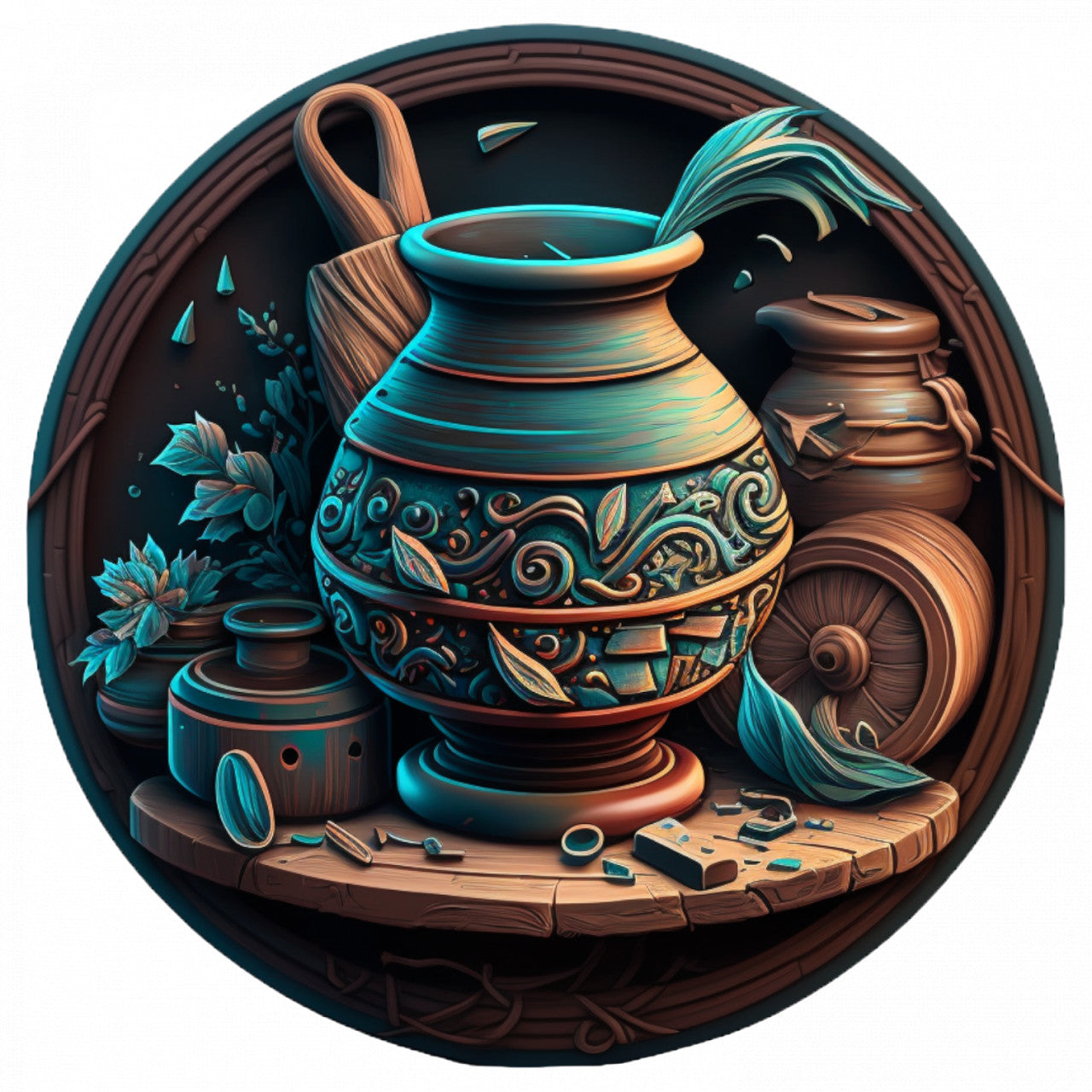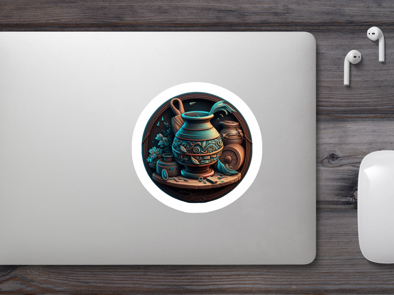 Set 5 bucati, Sticker decorativ, Vase de lut, Rezistent la apa, NO7565, 6 cm, Multicolor