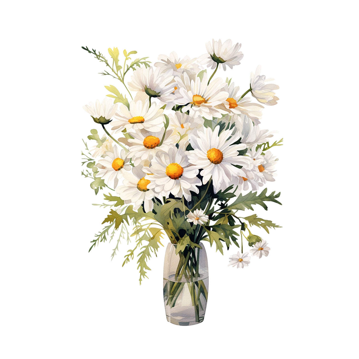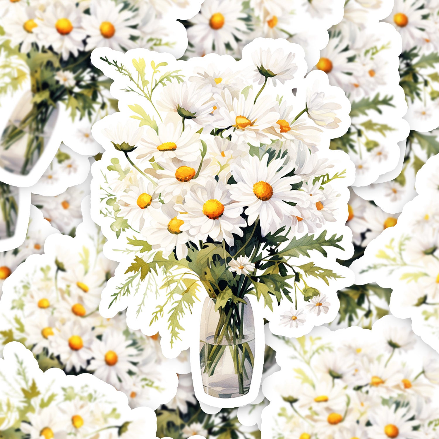 Set 5 bucati, Sticker decorativ, Vaza cu margarete, Rezistent la apa, NO15160, 6 cm, Multicolor