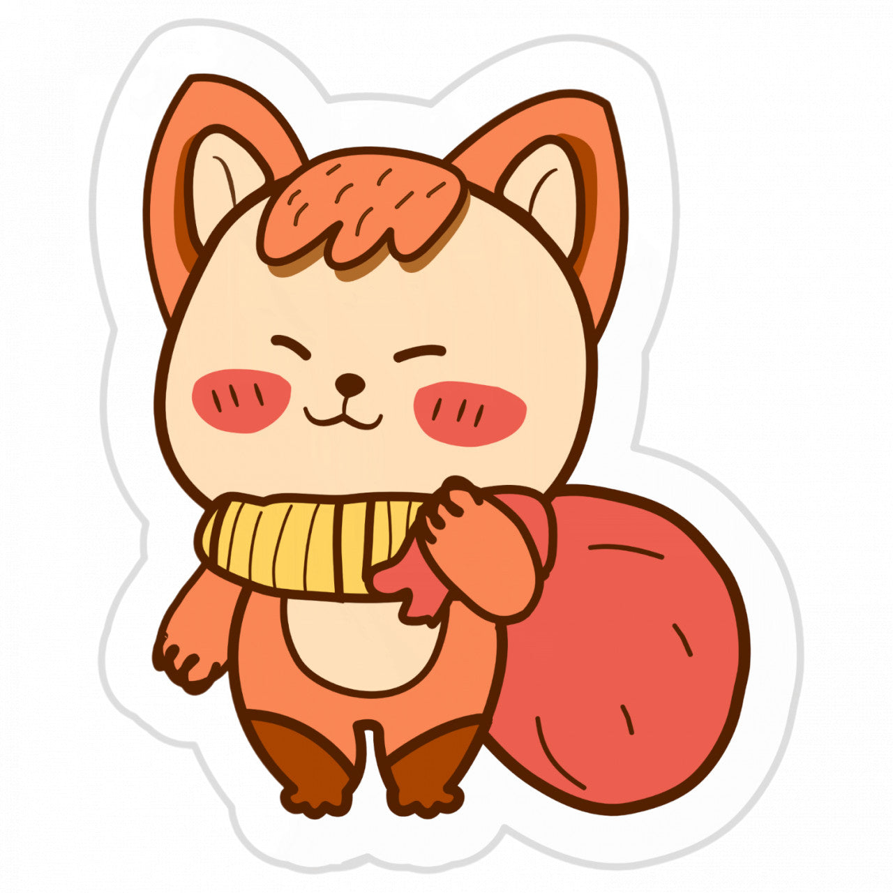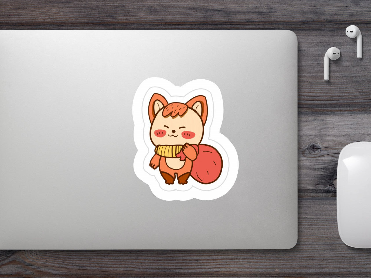 Set 5 bucati, Sticker decorativ, Vulpea cu merinde, Rezistent la apa, NO8390, 6 cm, Multicolor