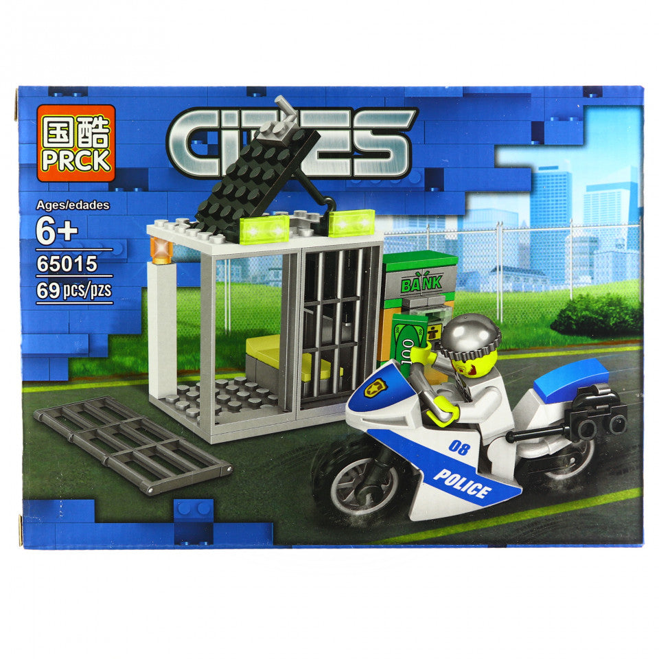 Set de constructie, tip City Police, Motocicleta de politie si bancomat, 69 piese