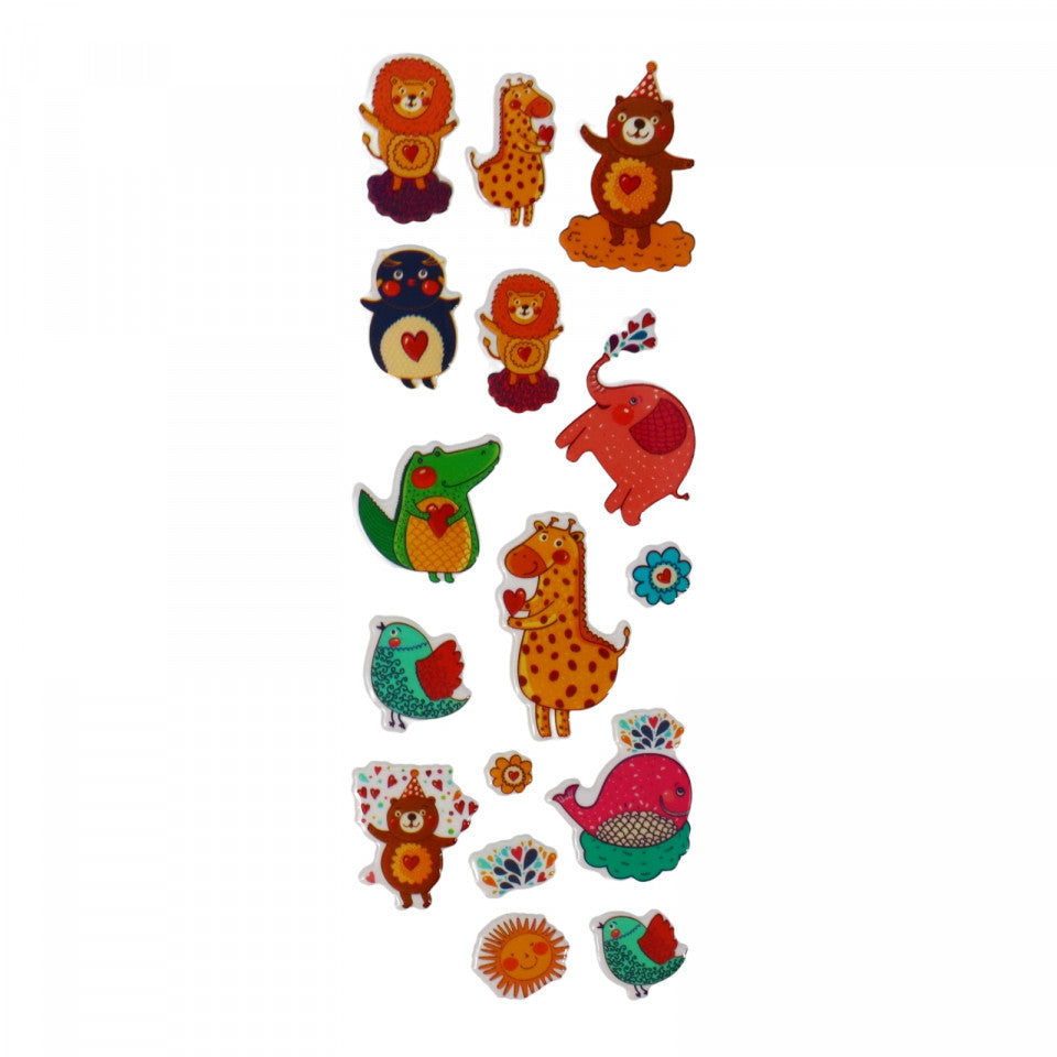 Set Sticker 3D pentru copii, Animale, 16 piese, LVA018, 0.8 - 3.8 cm, Multicolor