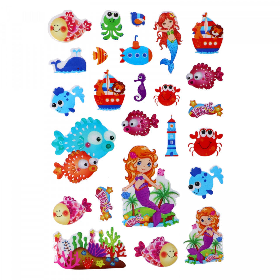 Set Sticker 3D pentru copii, Animale Marine, 25 piese, ALP010, 1 - 8 cm, Multicolor