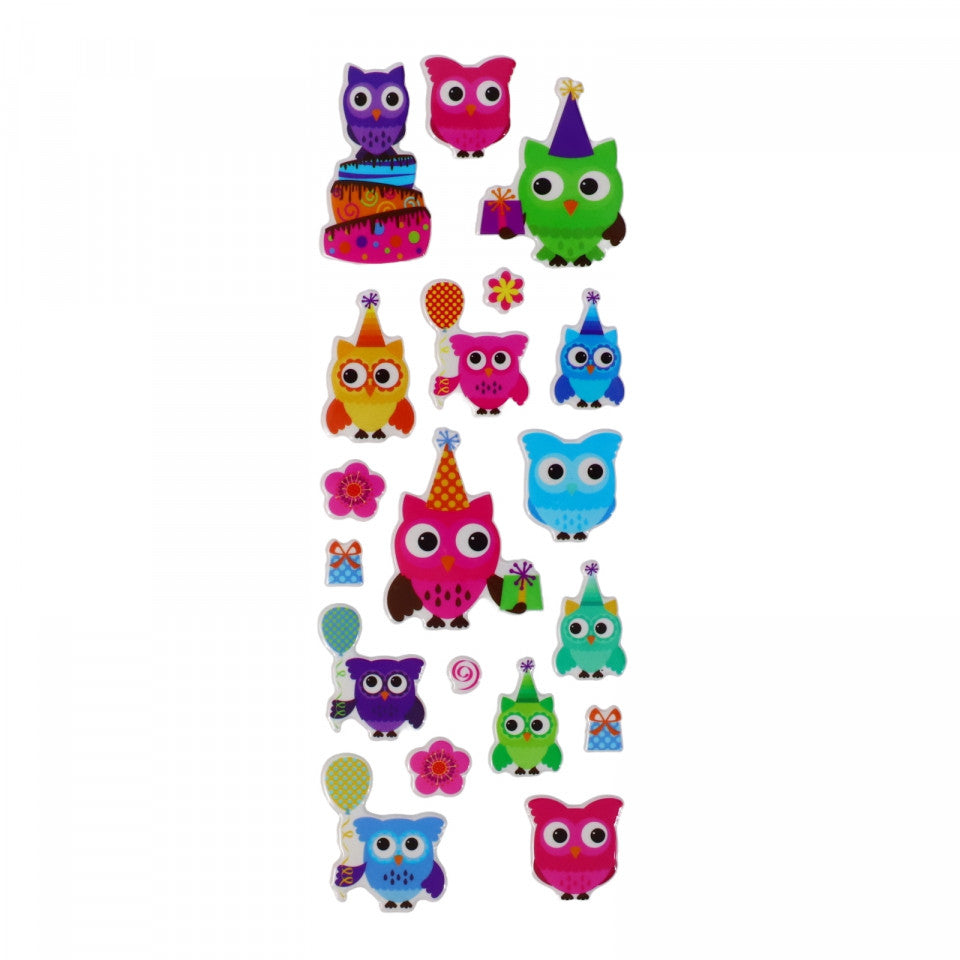 Set Sticker 3D pentru copii, Bufnite, 19 piese, LVA002, 0.8 - 3.8 cm, Multicolor