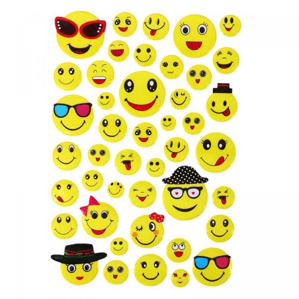 Set Sticker 3D pentru copii, Emoji, 45 piese, ALP205, 1.5 - 4.5 cm, Multicolor