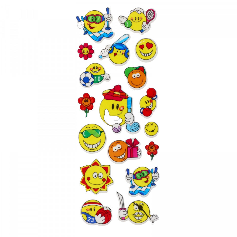 Set Sticker 3D pentru copii, Emoji, Happy Face, 18 piese, VK608, 1 - 4 cm, Multicolor