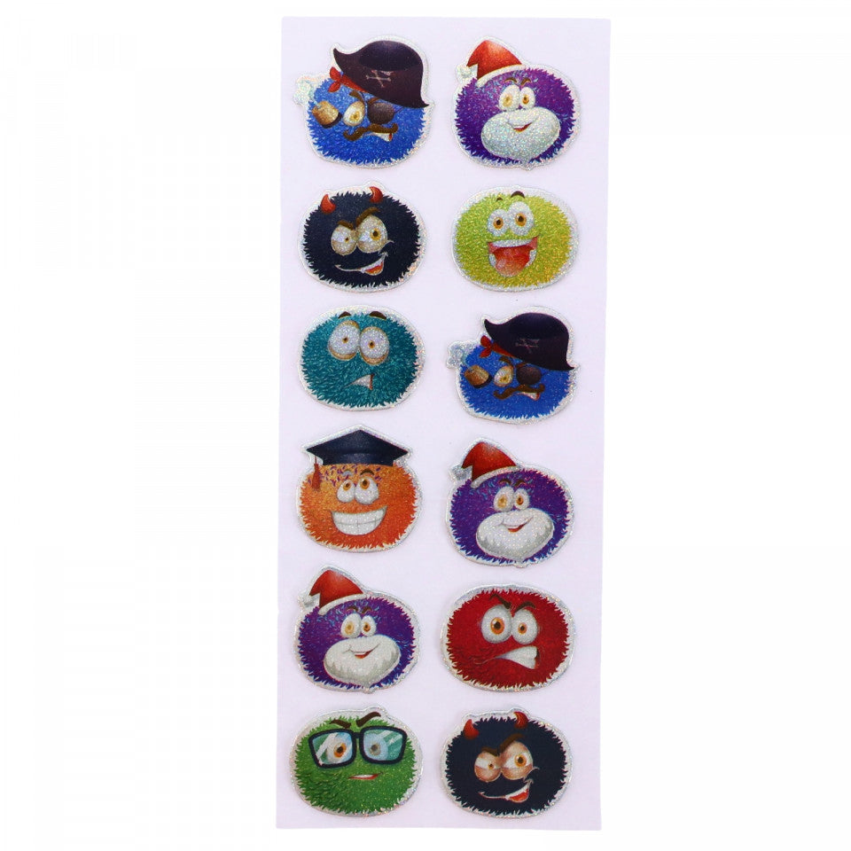 Set Sticker 3D pentru copii, Emoji monsters, 12 piese, 2.5 cm, Multicolor