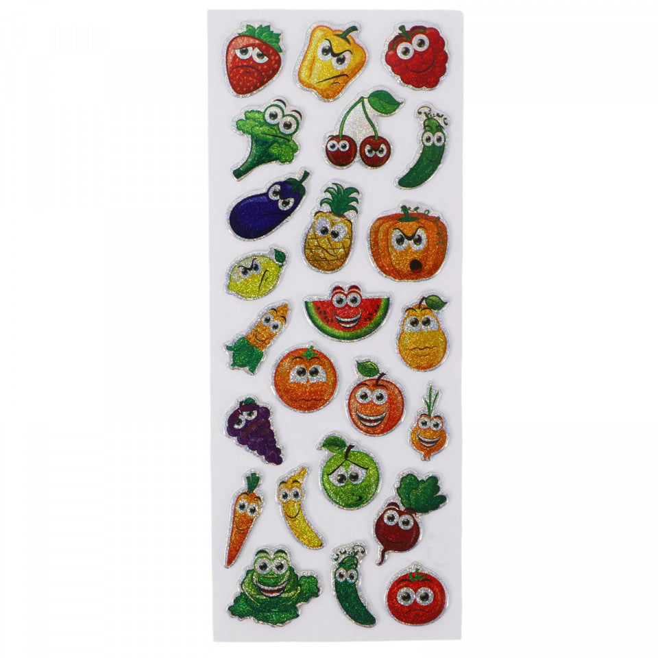 Set Sticker 3D pentru copii, Fructe si legume, 24 piese, 2 cm, Multicolor