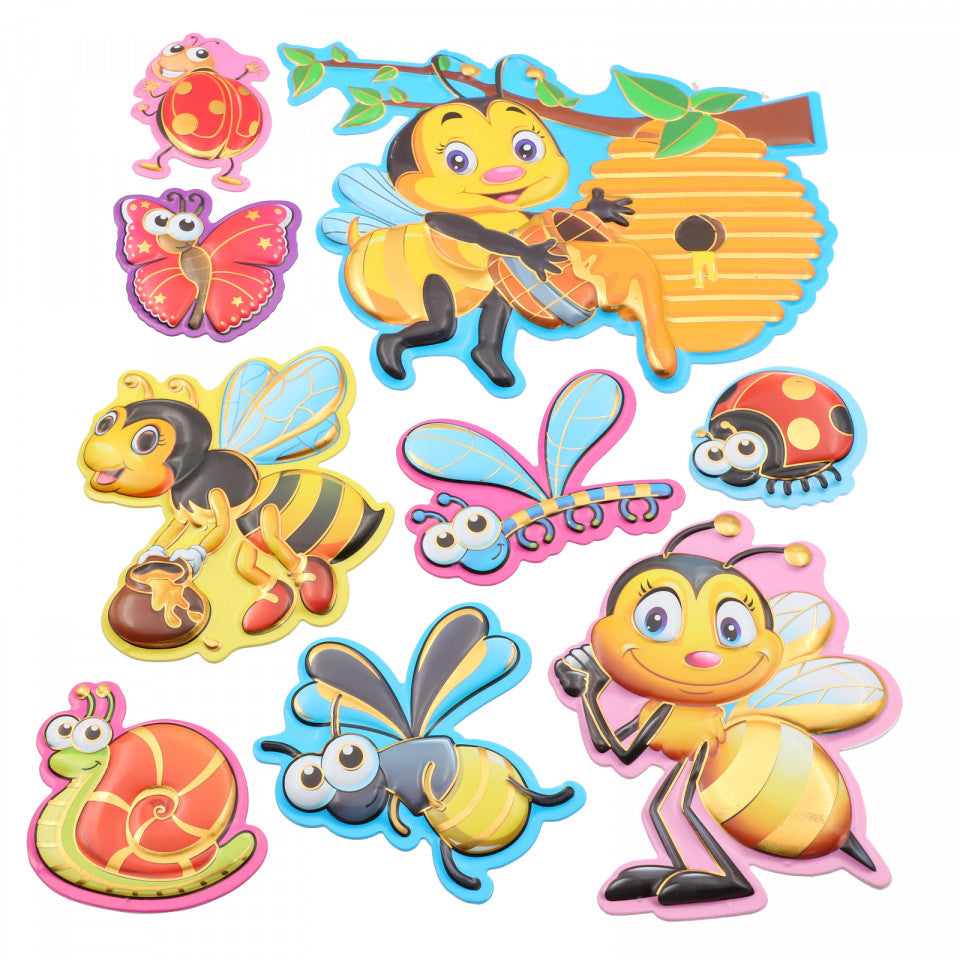 Set Sticker 3D pentru copii, Insecte, decor camera, 9 piese, JJ-FD004, Multicolor