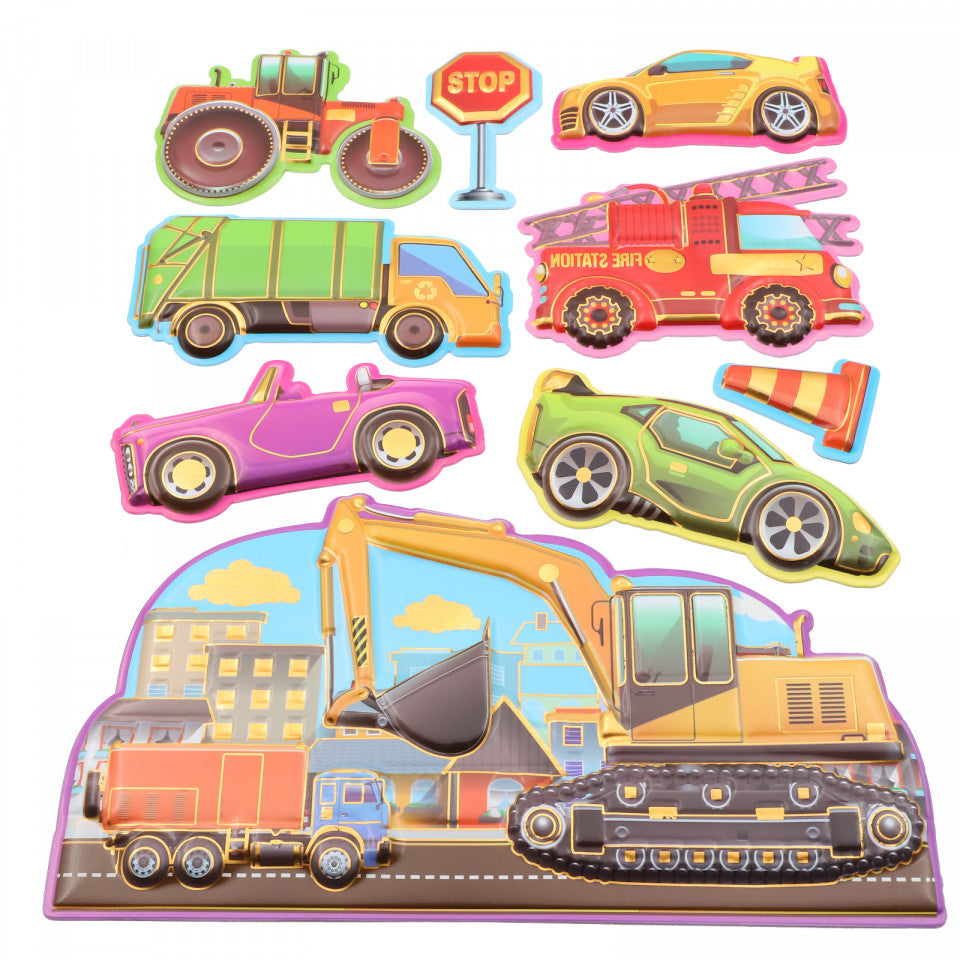 Set Sticker 3D pentru copii, Masinute, decor camera, 9 piese, JJ-FD012, Multicolor
