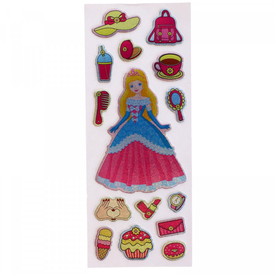 Set Sticker 3D pentru copii, Printesa, 15 piese, CB463, 1.3 - 8 cm, Multicolor