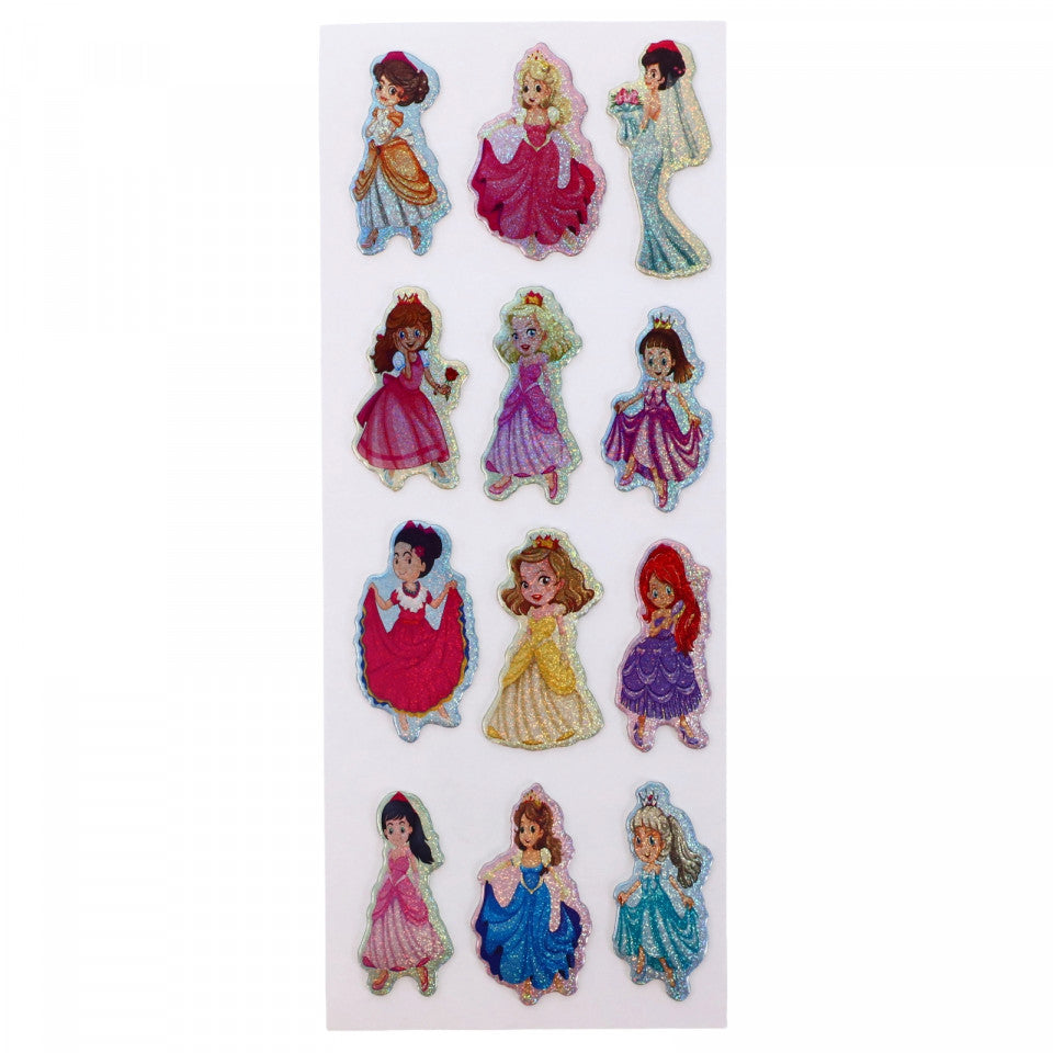 Set Sticker 3D pentru copii, Printese, 12 piese, CB467, 3.8 cm, Multicolor