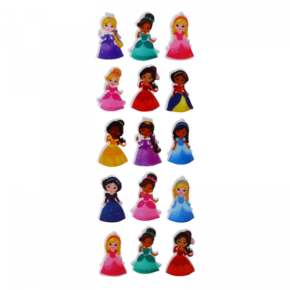 Set Sticker 3D pentru copii, Printese, 15 piese, VK865, 2.8 cm, Multicolor