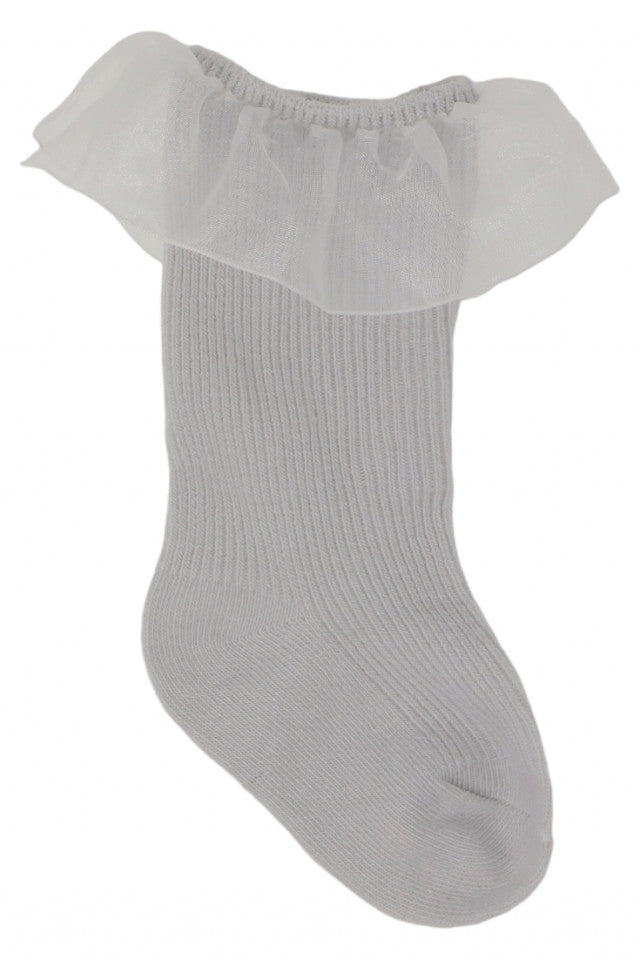 Sosete copii, cu dantela, 95%Bumbac, NO9128, 11-13 ani, Gri