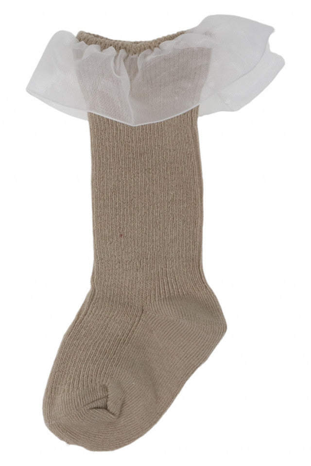 Sosete copii, cu dantela, 95%Bumbac, NO9129, 11-13 ani, Bej