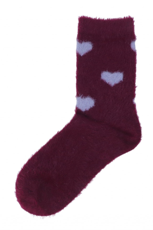Sosete lungi dama, 80% Lana Nurca, Inimioare, NO2127, 39-42, Rosu inchis