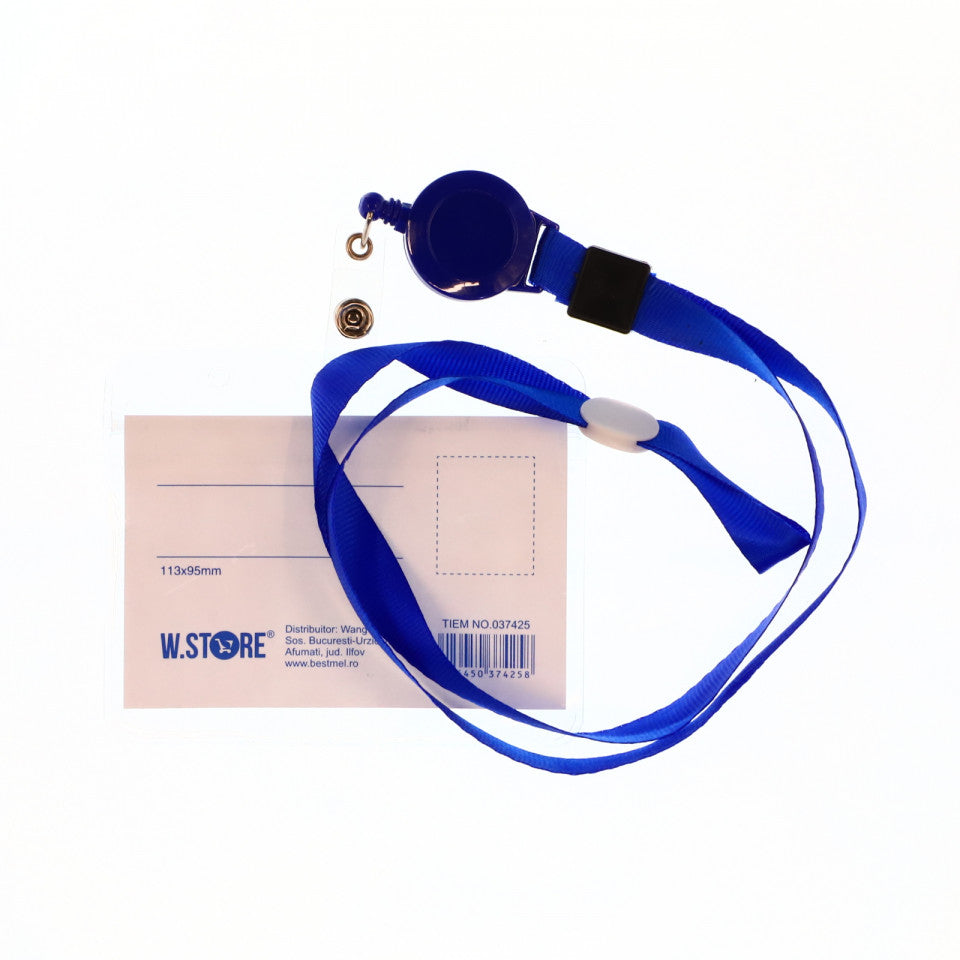 Suport legitimatie standard cu sistem de prindere, 11.5x9.5 cm, Albastru