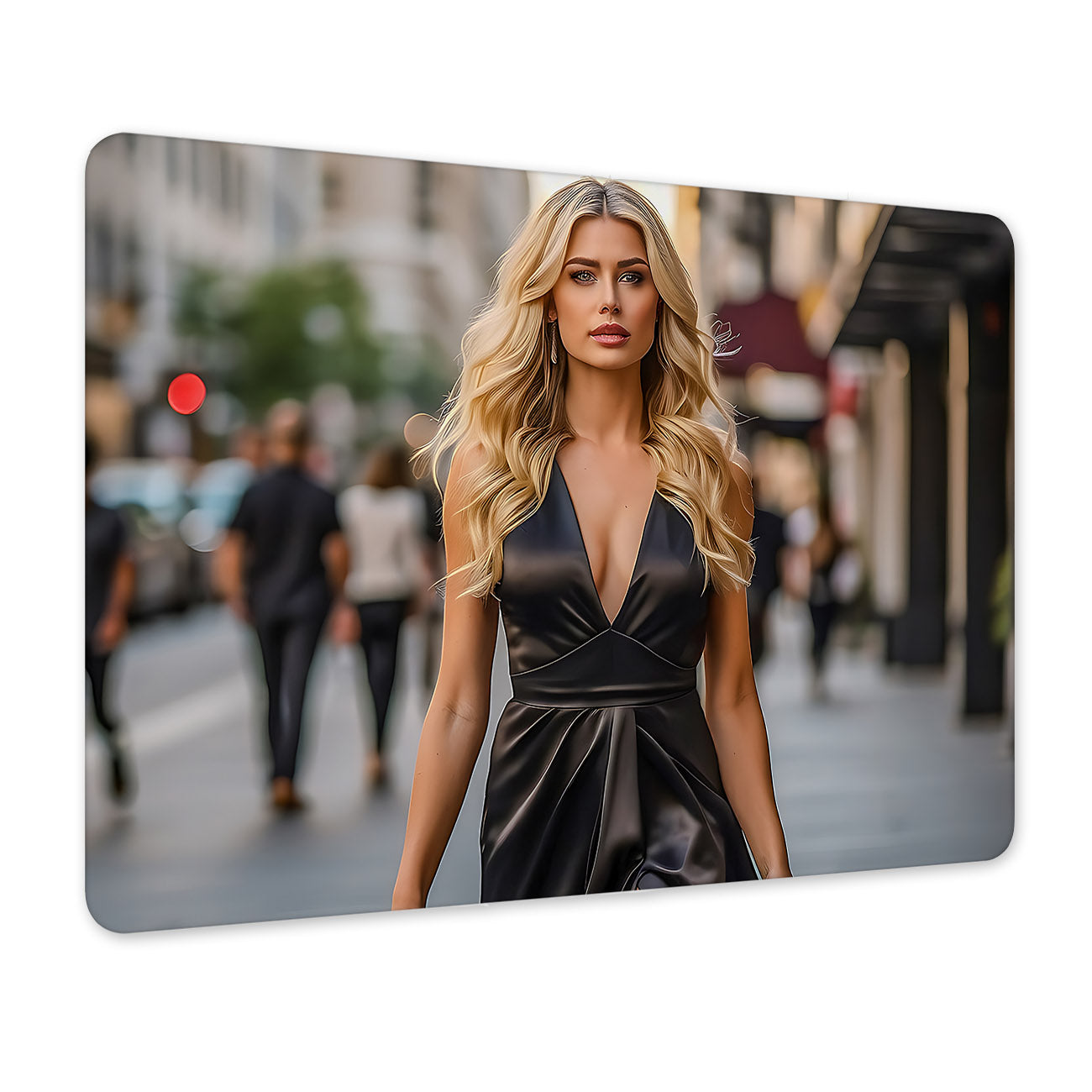 Tablou din aluminiu, Blonda cu decolteu, NO3294, Sidef, 19.5 x 29.5 cm, Multicolor