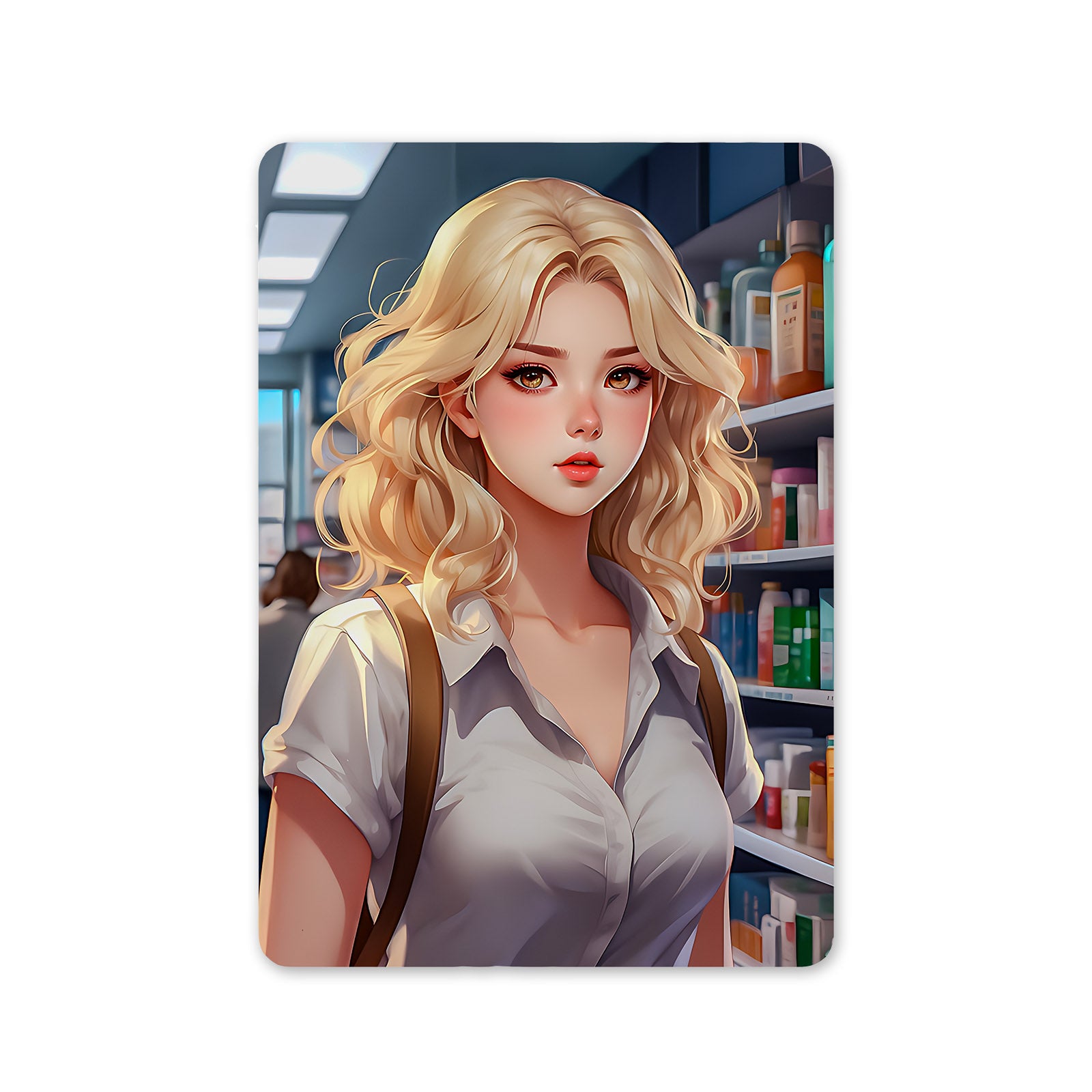 Tablou din aluminiu, Blonda Waifu, NO2526, Sidef, 19.5 x 29.5 cm, Multicolor