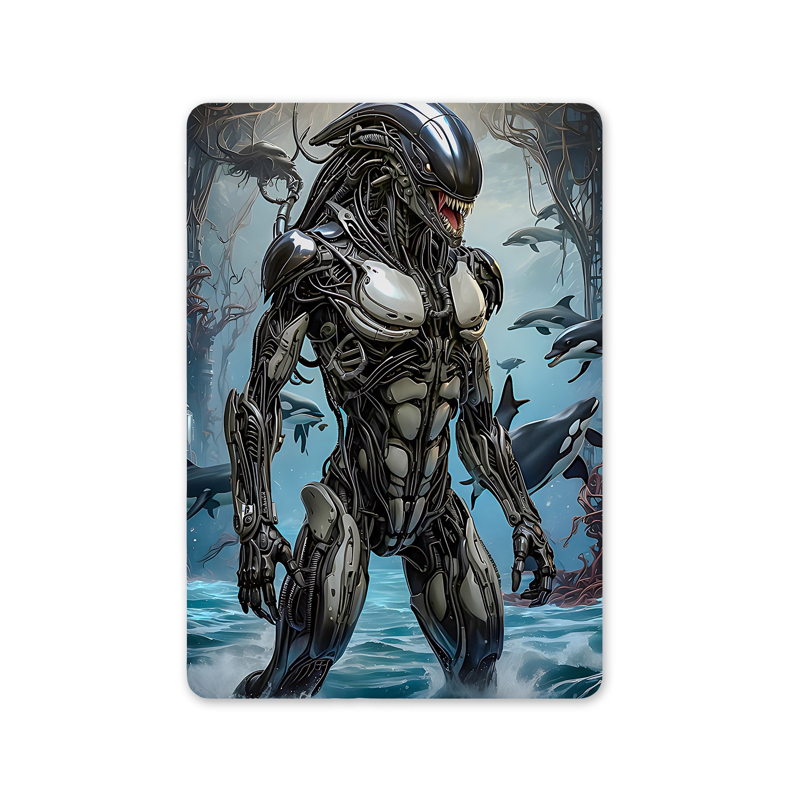 Tablou din aluminiu, Creatura mistica Xenoform Black, NO2529, Sidef, 19.5 x 29.5 cm, Multicolor