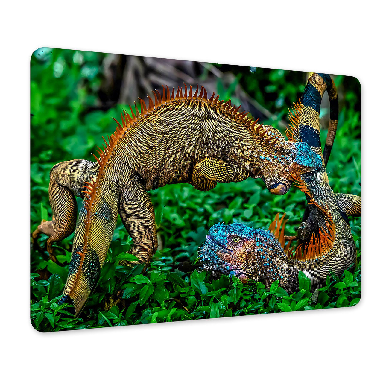 Tablou din aluminiu, Iguane furioase, NO534, Sidef, 19.5 x 29.5 cm, Multicolor