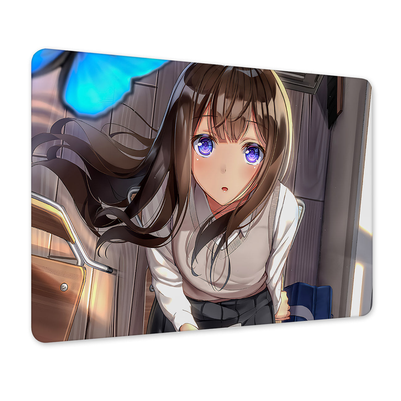 Tablou din aluminiu, Looking Up At The Half Moon Fata cu ochi albastri, NO3169, Sidef, 19.5 x 29.5 cm, Multicolor