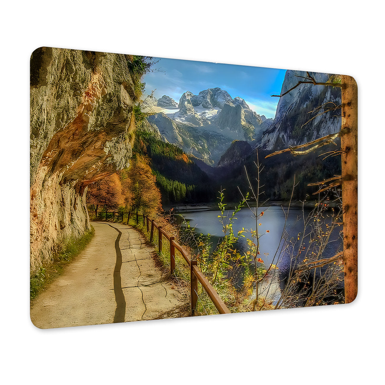 Tablou din aluminiu, Muntele Road Lake Summer, NO1570, Sidef, 19.5 x 29.5 cm, Multicolor