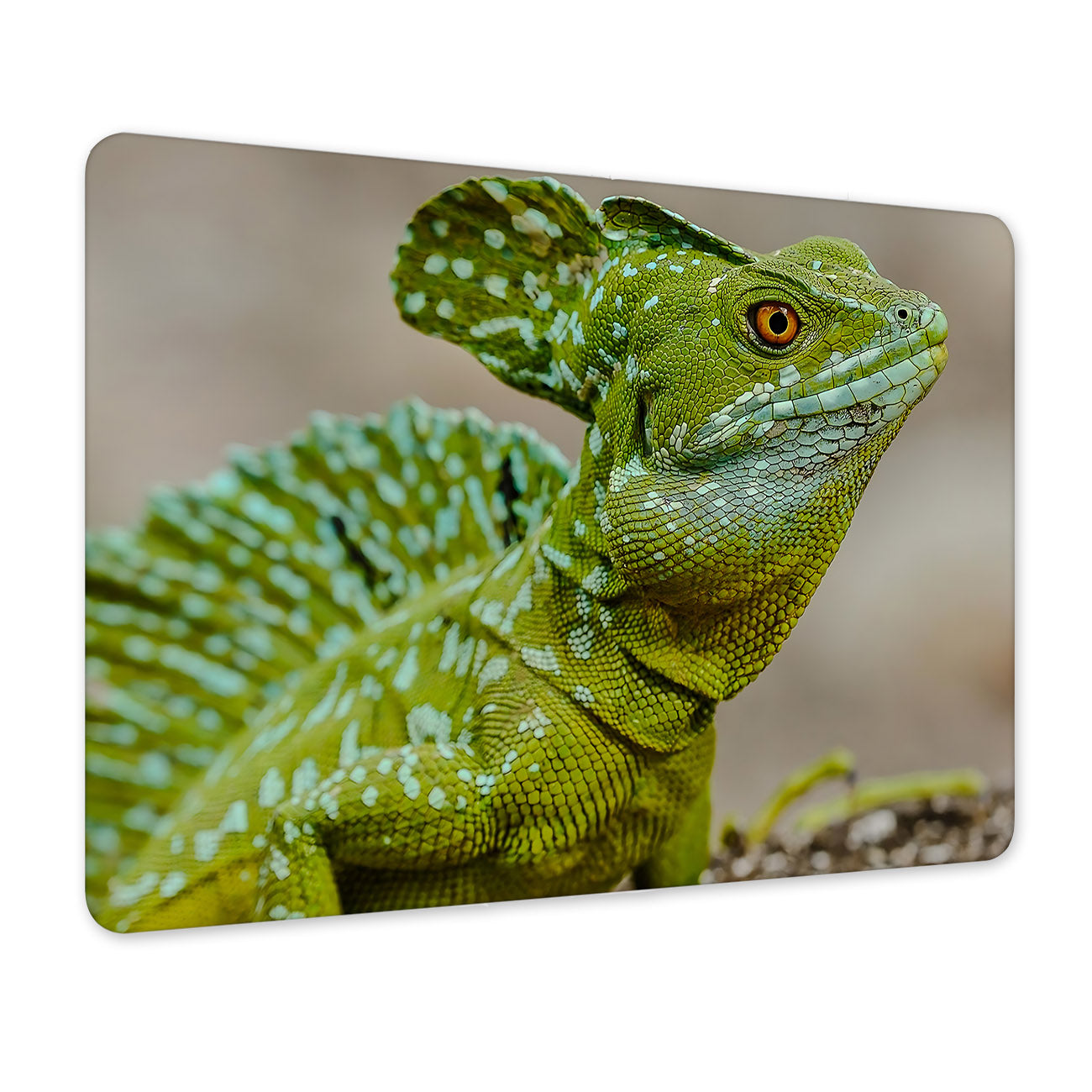 Tablou din aluminiu, Plumed basilisk reptila verde, NO2214, Sidef, 19.5 x 29.5 cm, Multicolor