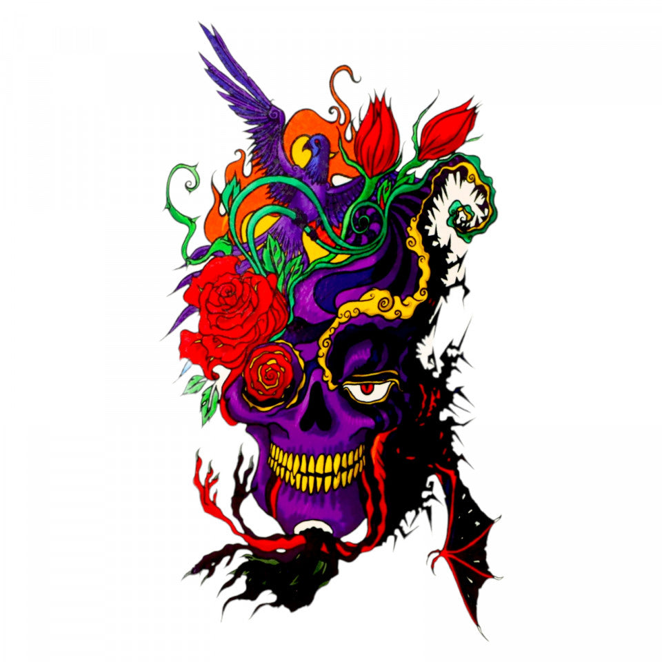 Tatuaj temporar, Craniu cu trandafiri, GF936, 9 x 16.5 cm, Multicolor