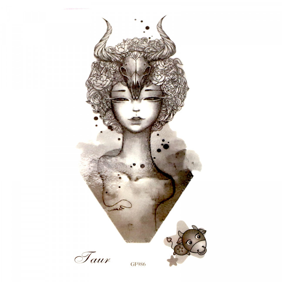 Tatuaj temporar, Zodia Taur, GF986, 9 x 16.5 cm, Negru