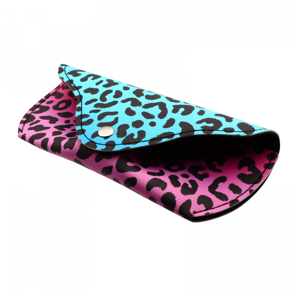 Toc / Etui pentru ochelari, model animal print, Bleu cu roz