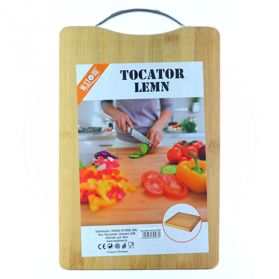 Tocator lemn bambus si maner, 20x30x1.8 cm
