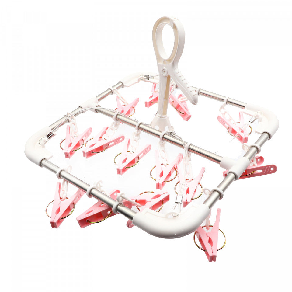 Uscator de rufe cu 14 carlige, patrat, cu sistem de agatare, 25x25cm, Roz