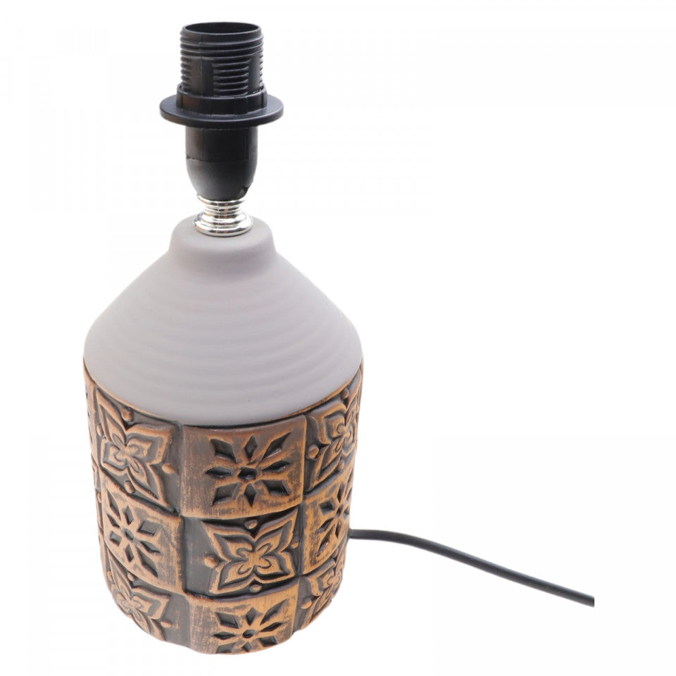 Veioza din ceramica, abajuri textil, E14, cu intrerupator, model Vintage 37 x 22.5 cm, Auriu
