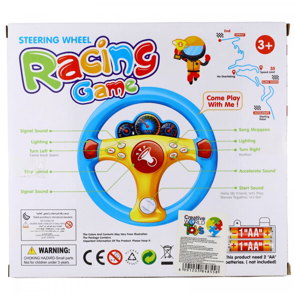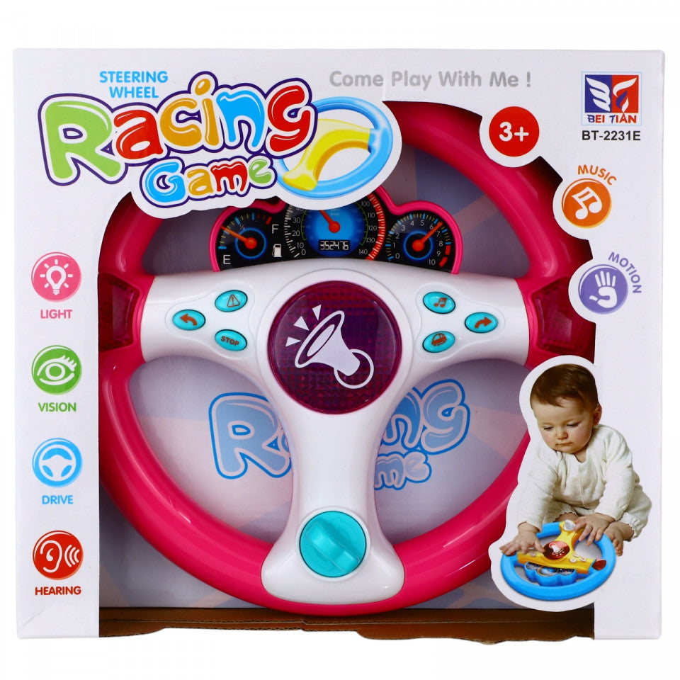 Volan pentru copii, cu claxon, lumini, muzica, si diverse sunete, Roz